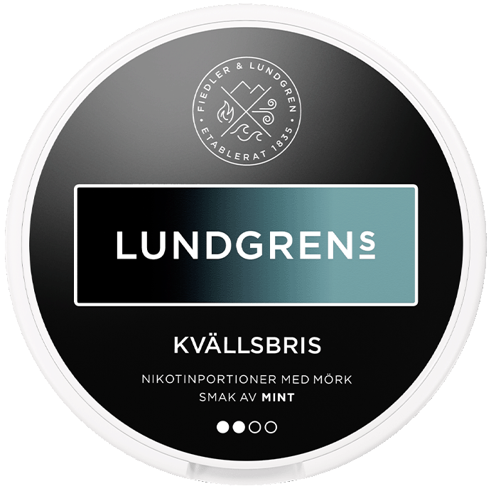 Lundgrens Kvällsbris All White is a tobacco‑free white‑portion nicotine pouch featuring a dark mint flavour with subtle tobacco‑style undertones. Each can contains 21 normal‑sized pouches (net weight ca. 16.8 g) with approximately 8 mg nicotine per pouch (10 mg/g) in the “Strong / Stark” strength category. The all‑white format ensures minimal drip and discreet use, making it a suitable choice for users who want rich flavour and modern convenience without tobacco leaf.
