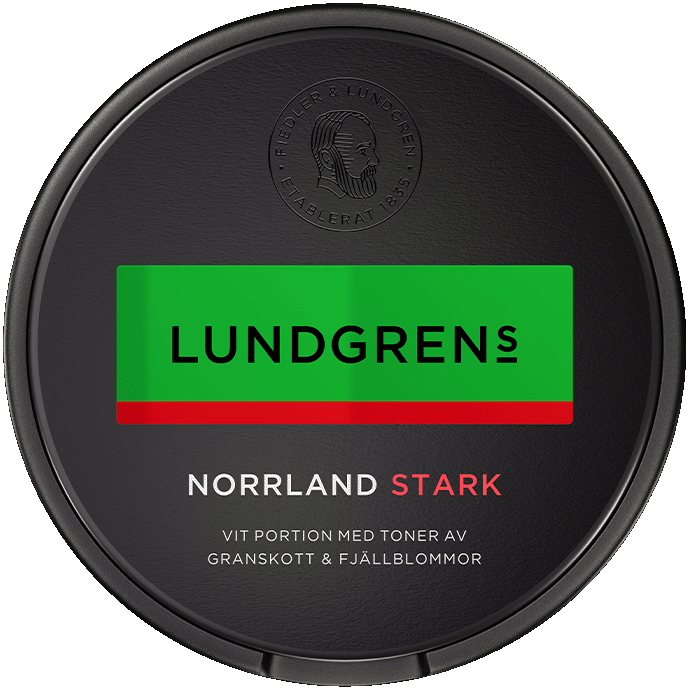 Lundgrens Norrland Stark is a white‑portion snus from Lundgrens (produced by Fiedler & Lundgren / British American Tobacco) — the “Stark” (strong) variant of their classic Norrland. The flavour evokes the Nordic wilderness, blending traditional tobacco notes with fresh aromas of pine shoots and mountain‑flower (fjällblomma) — a taste inspired by northern Sweden’s forests.