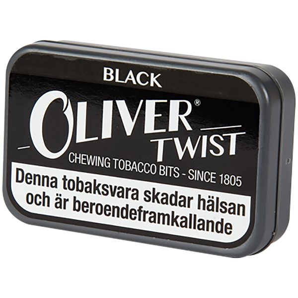 Oliver Twist Black is a classic chewing-tobacco product from House of Oliver Twist (Denmark), offered as small hand-rolled bits. Each portioned “bit” combines a deep tobacco base with a distinct salty-sweet salmiak (liquorice-salty licorice) flavour — delivering a rich, balanced savoury-sweet taste profile. The bits are designed to be placed between cheek and gum (or slightly under the lip), where they slowly release nicotine and flavour over approximately 30–60 minutes. Each bit contains around 5 mg nicotine, with a total weight of 7 g per can, making Black a discreet, rökfri (smokeless) alternative to traditional snus or cigarettes, suitable for those seeking a mellow but flavourful licorice-tobacco chew.