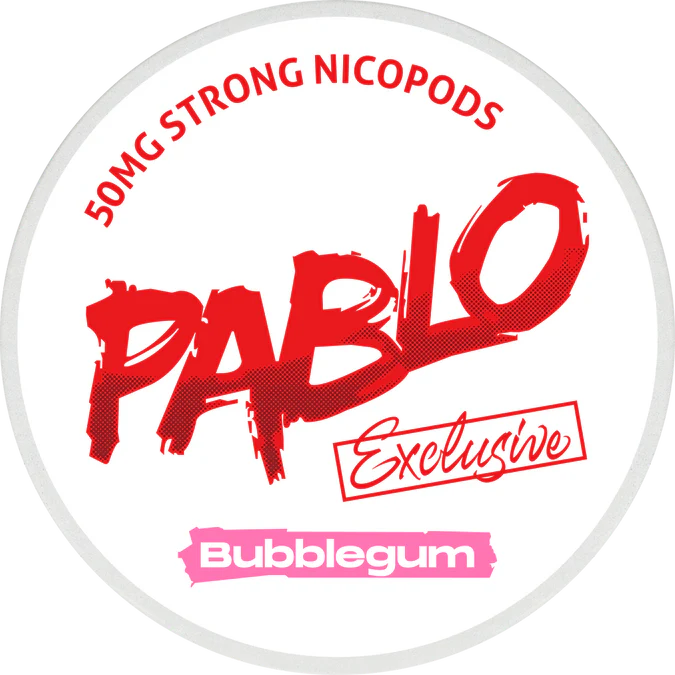 Pablo Exclusive Bubblegum is a tobacco‑free (all‑white) slim‑portion nicotine pouch featuring a sweet bubblegum flavour with hints of strawberry. The nicotine content is approximately 50 mg/g (ultra‑strong category). The format is slim for a comfortable, discreet fit under the lip, and each can contains 20 pouches (net weight 12 g). Suitable for experienced users looking for bold flavour and high nicotine strength.