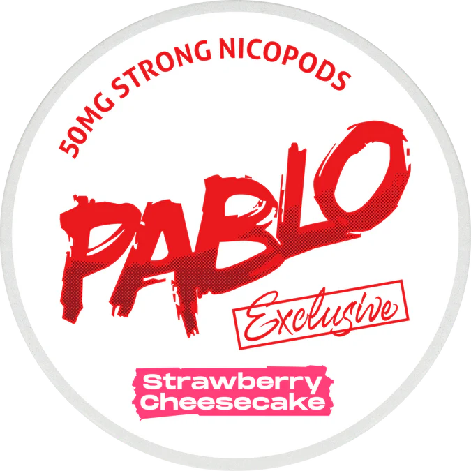 Introducing PABLO Exclusive Strawberry Cheesecake an ultra‑strong, tobacco‑free nicotine pouch designed for experienced users who demand both flavour and potency. With a nicotine content of 50 mg per gram (approximately 30 mg per pouch in a slim 0.60 g portion), this offering from the PABLO Exclusive range pushes the limits of strength and taste.
