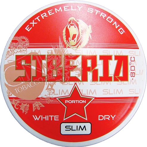 Siberia Red Slim (Series ‑80 Degrees White Dry) is an ultra-strong slim portion snus from GN Tobacco, delivering an intense 43 mg/g nicotine level. This slim-format white dry snus combines powerful tobacco flavour with a sharp spearmint cooling effect, designed for experienced users. With low moisture content and discreet slim portions (20 per can, approx. 0.65 g each), it offers a long-lasting release and minimal drip. A staple in the Siberia range, Siberia Red Slim is known for uncompromising strength and clean flavour.