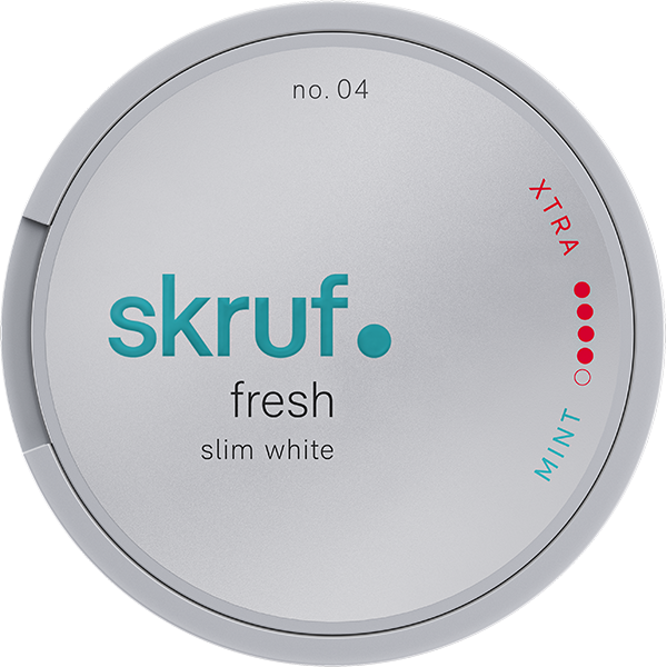 Skruf No.4 Slim Fresh Xtra Strong is a slim white portion snus developed for users who want a powerful nicotine experience combined with a fresh mint flavour. The slim format sits discreetly under the lip, while the white portion surface reduces drip and provides a longer-lasting, controlled flavour release. The taste profile balances robust tobacco notes with a clear, cooling mint character, making it a strong and refreshing option for experienced snus users who prefer intensity in a modern, discreet format.