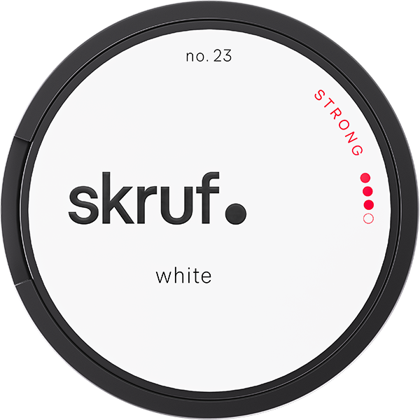 Skruf No.23 White Strong is a strong white portion snus from Skruf, offering a classic tobacco character with subtle bergamot and rose oil notes. Its white portions are drier than traditional snus, reducing drip and prolonging flavour release. With a higher tobacco content and a strong nicotine level, this snus delivers a bold and satisfying experience. Each can contains 24 standard white portions with a consistent taste and robust profile.