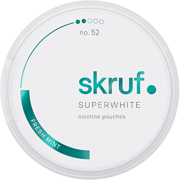 Skruf Superwhite No.52 Fresh Mint is a premium tobacco-free nicotine pouch from Skruf Super White, designed for users who want a refreshing mint experience without traditional tobacco. These slim, all-white pouches sit discreetly under the lip and deliver a cool, crisp mint flavour with a medium nicotine strength, ideal for regular users seeking a balanced kick. Each can contains 24 slim pouches that won’t stain teeth, with an even release of flavour and nicotine throughout use.