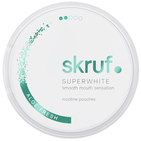 Skruf Super White Aloe Fresh is a slim, all-white nicotine pouch that combines a refreshing aloe vera and mint flavour in a tobacco-free format. Each can contains 22 discreet pouches, designed for a comfortable fit under the lip. With a normal nicotine strength of approximately 8 mg per pouch (≈10 mg/g), this product is suitable for users seeking a balanced experience with moderate intensity. The slim format and clean, tobacco-free base provide a fresher mouthfeel, while the aloe‑mint flavour delivers a light, cooling sensation throughout use.