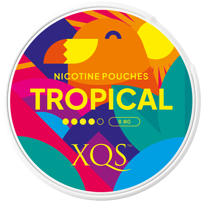 XQS Tropical Slim Strong is a tobacco‑free “white snus” nicotine pouch from Swedish brand XQS, delivering a tropical fruit flavour blend of mango, passionfruit and pineapple. The slim portions are designed for discreet, comfortable placement under the lip, making them suitable for anyone seeking a subtle but effective nicotine experience. Each portion contains 8 mg nicotine (16 mg per gram), placing this variant in the “Strong” category (4/5).